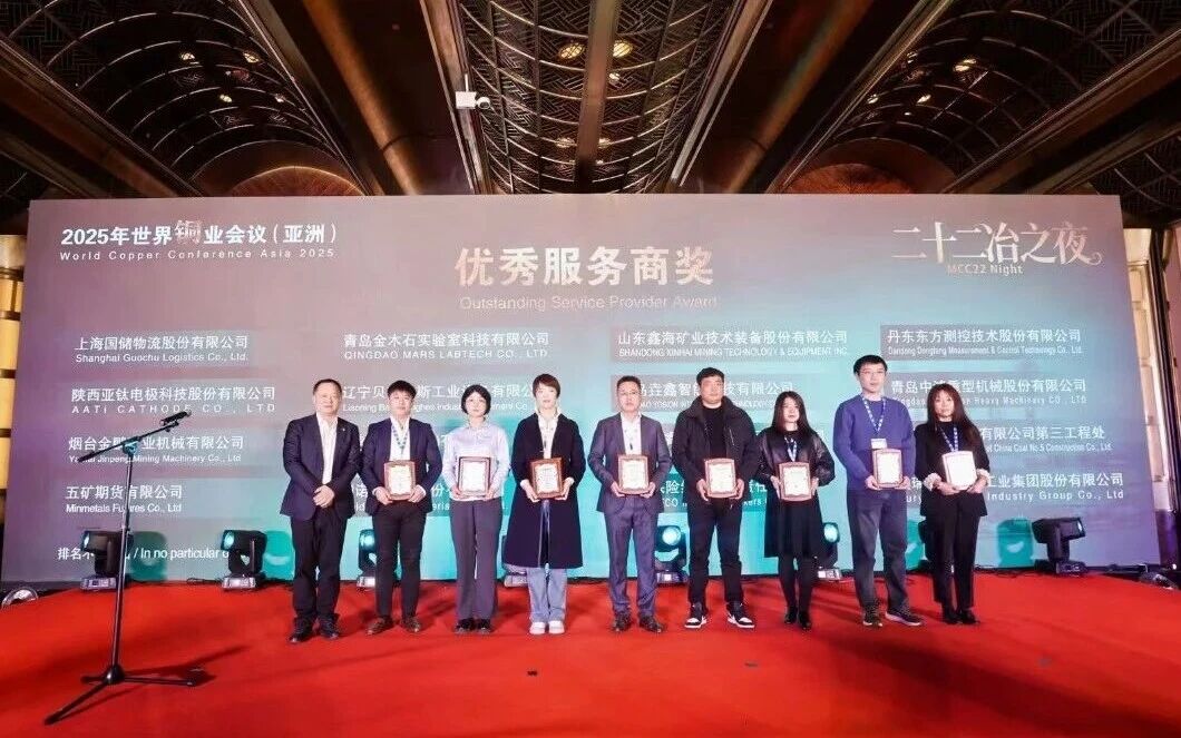 2025年11月26–27日,由 China Minmetals Corporation(中国五矿集团)与 CRU Group(英国商品研究所 CRU)联合主办的 World Copper Conference Asia,于“2025 亚洲铜周(Cesco Asia Copper Week)”期间在上海成功举办。中鸿重机凭借在地下矿山采掘装备领域的专业实力,荣获大会颁发的“优秀服务商”奖项。